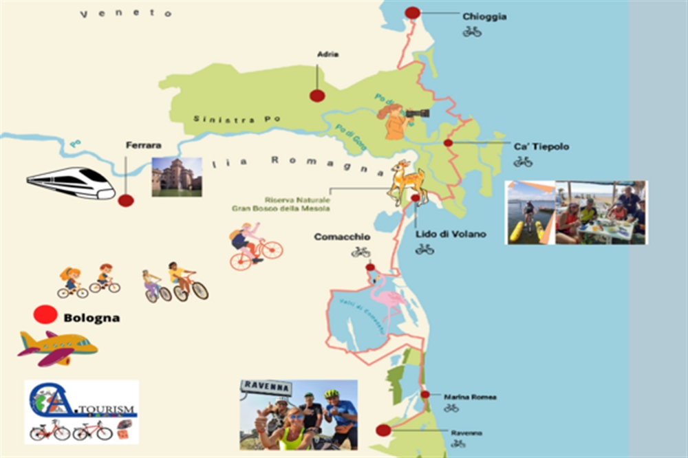 Un percorso attraverso il fascino del paesaggio del Parco Naturale del Delta del Po, lungo l’antica Rotta del Sale, che da Venezia conduce a Cervia. Un facile itinerario pianeggiante, che si sviluppa per la maggior parte lungo piste ciclabili o strade bianche.