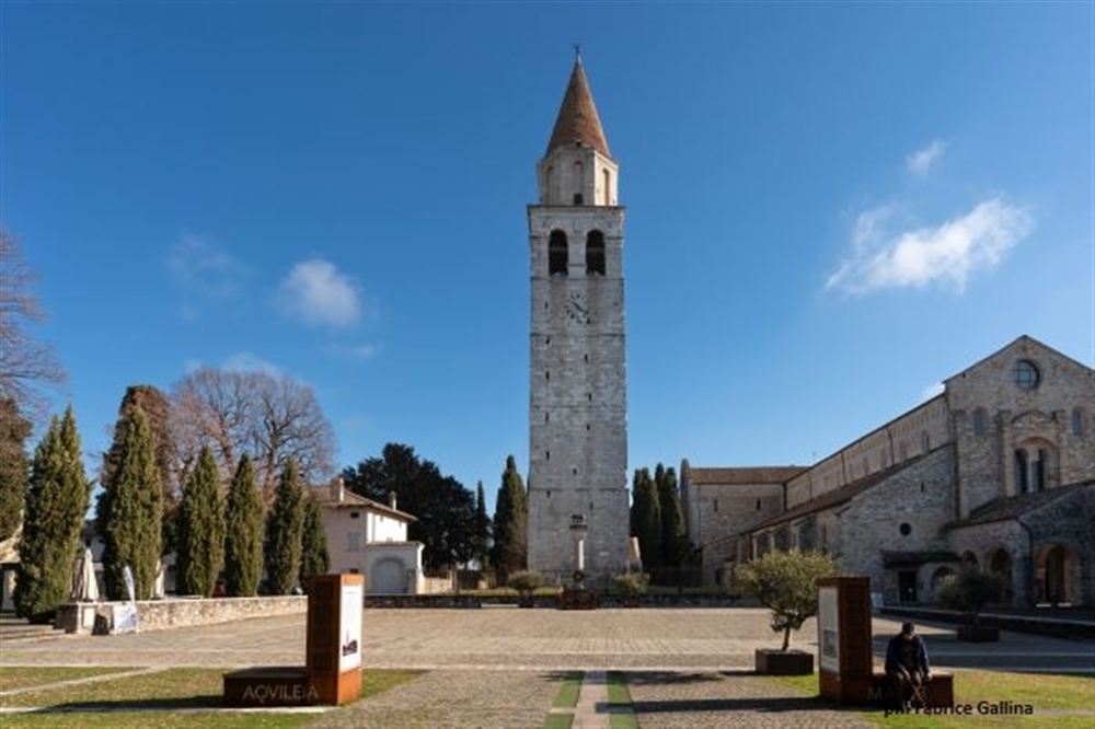 Arrivo in Friuli Venezia Giulia e sosta a Palmanova, l'unico esempio al mondo di città costruita a forma di stella geometrica a nove punte. Breve passeggiata (senza guida) alla scoperta della città-fortezza, sito UNESCO. Pranzo in locale tipico a Palmanova o dintorni. Nel pomeriggio proseguimento per Aquileia, importantissima colonia romana fondata nel 181 a.C. e importante centro economico e militare per l'espansione dell'Impero romano verso il Danubio. Visita guidata dell’area archeologica di eccezionale importanza, considerata dall'Unesco Patrimonio dell'Umanità. Colonizzata nel 181 a.C. in "agro gallorum", Aquileia sorge come testa di ponte per la conquista romana delle aree danubiane e con lo scopo di difendere i confini orientali per incrementare il già florido commercio tra il bacino del Mediterraneo orientale ed i paesi transalpini. Gli scavi hanno messo in luce resti del foro romano e di una basilica, del sepolcreto, di pavimenti in mosaico e fondazioni di case (fondi Cal ed ex Cossar), di statue della Via Sacra, dei mercati, di mura, del porto fluviale, di un grande mausoleo e d'altro. La splendida Basilica di Santa Maria Assunta, che si affaccia sulla storica Piazza Capitolo, fu eretta su un edificio del IV secolo, su cui vennero effettuati nei secoli successivi numerosi ampliamenti (poi in gran parte distrutti durante le invasioni barbariche). Nel tempio si possono ammirare anzitutto i famosi mosaici paleocristiani (IV sec.), che costituiscono una tappa fondamentale nella storia dell'arte italiana